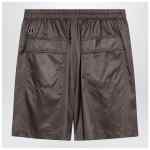 Rick Owens kilt-design shorts created in collaboration with Moncler in mud color, featuring an elasticated waistband with drawstring, two side pockets, two rear patch pockets with flaps, and rear logo embroidery.