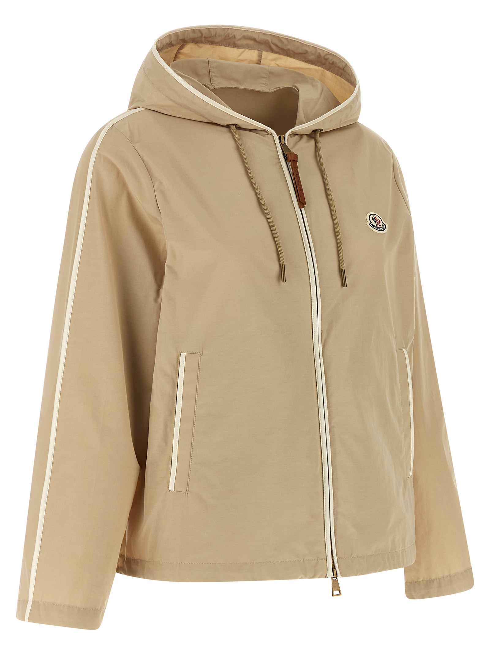 Sarracenia’ hooded jacket in poplin-effect technical fabric, front zip closure, contrast trim, front logo patch, front pockets, adjustable drawstring at the hem, and long sleeves.