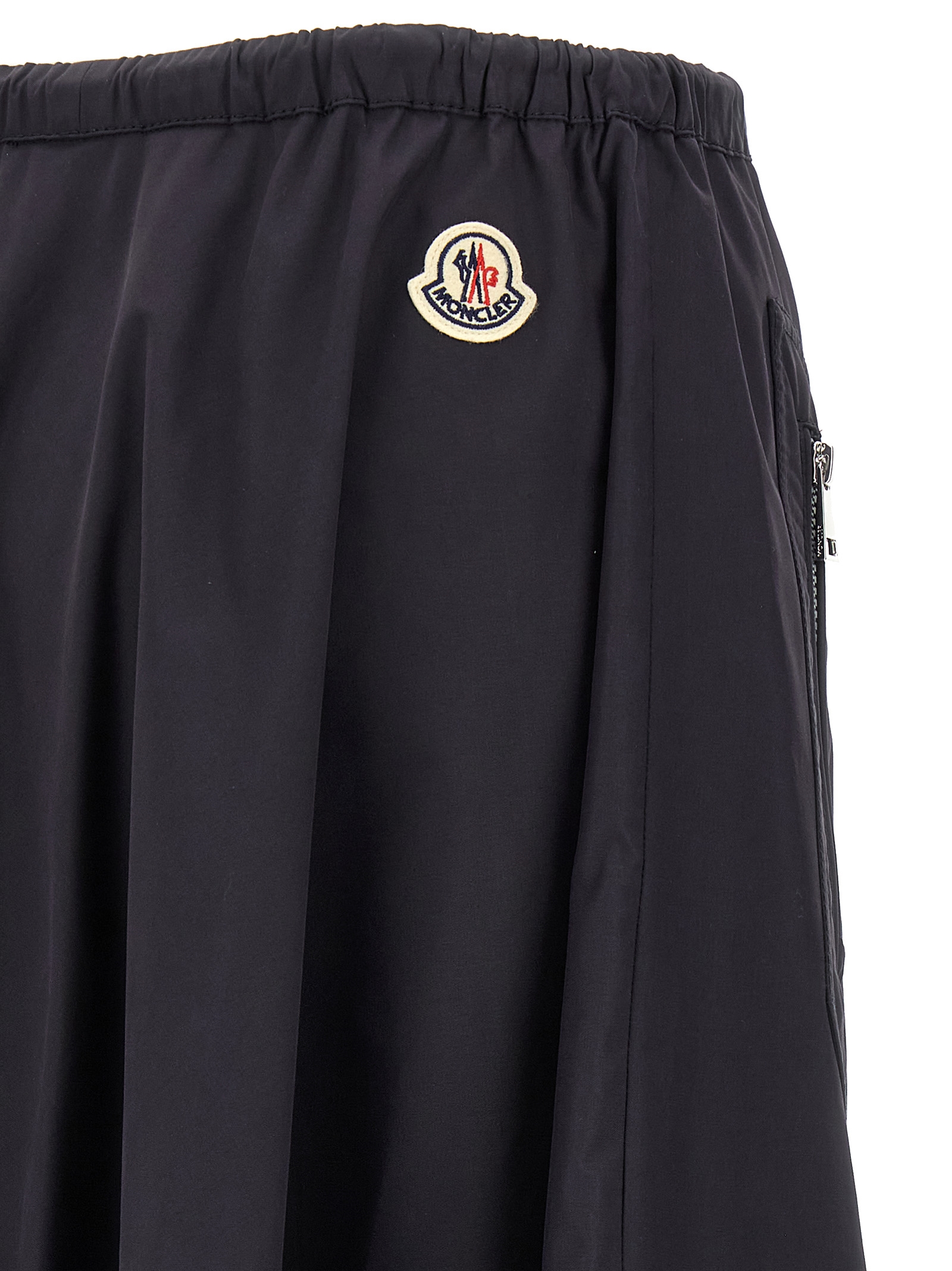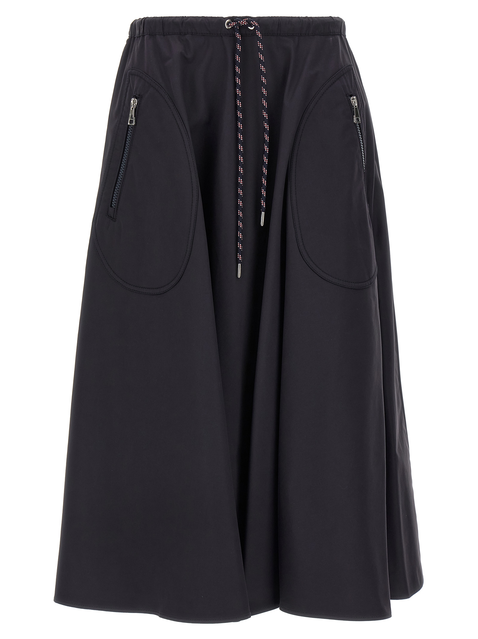 Full skirt in cotton and nylon blend, Flared silhouette, Back felt logo patch, Drawstring elastic waistband, Pockets, Unlined.