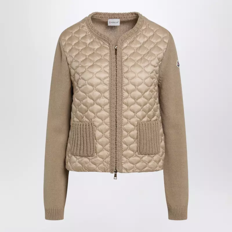 Moncler Women’s hybrid knit and padded nylon cardigan in beige