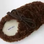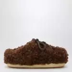 Mules by Moon Boot with a dark brown curly shearling upper featuring a slip-on ambidextrous design printed logo on the heel silver-tone metal eyelets crossed tubular laces thermoplastic rubber midsole and non-slip thermoplastic rubber outsole.