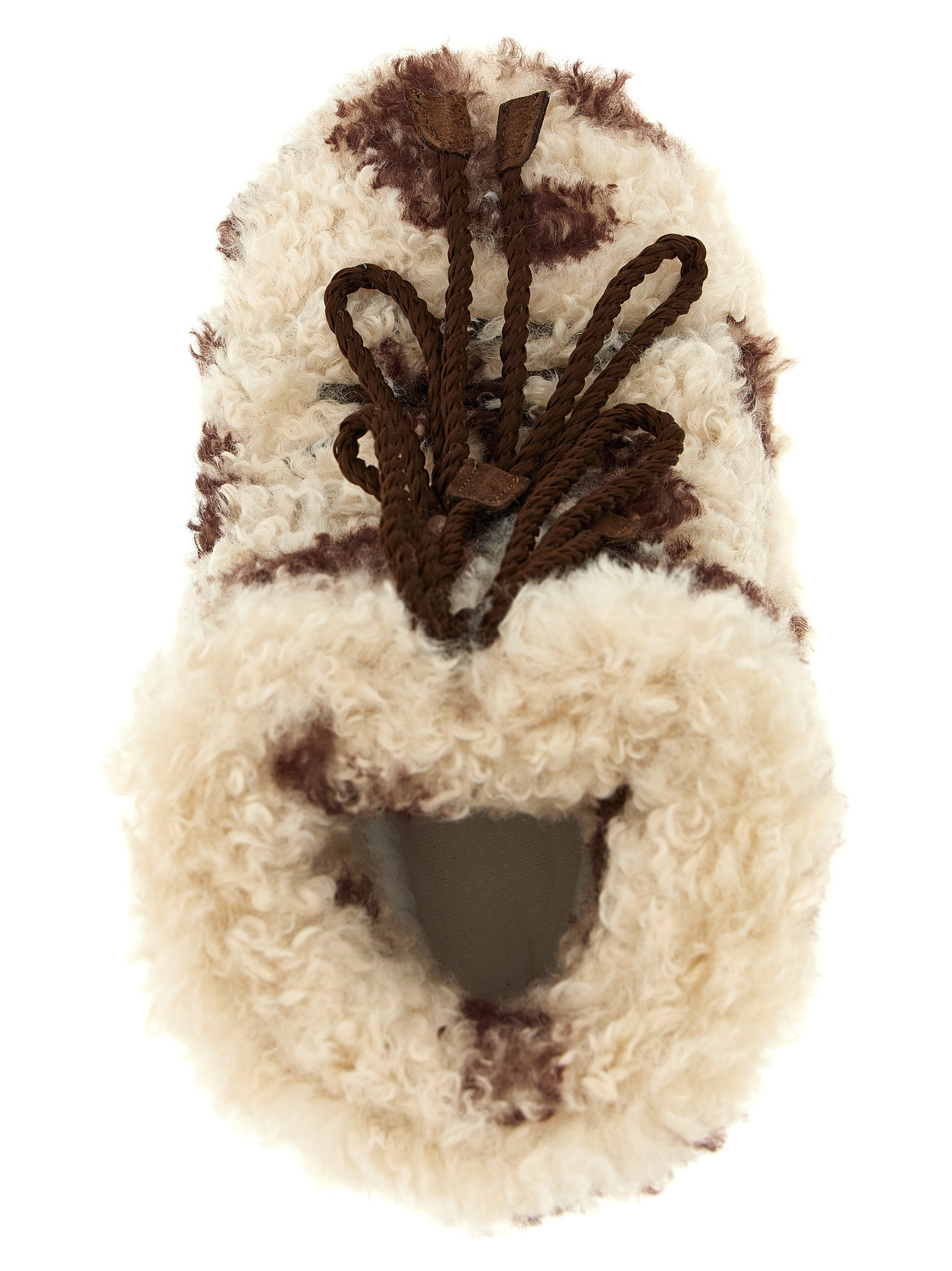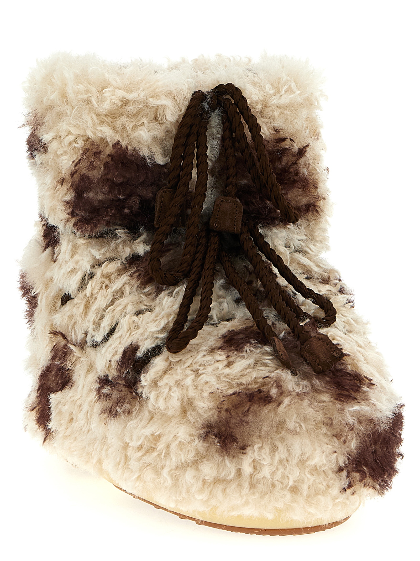 ‘icon low curly light’ ankle boots in fur-effect fabric, Ambidextrous model, Soft foam lining, Tubular crossed laces, Adjustable drawstring, Thermoplastic rubber midsole, Non-slip rubber tread.