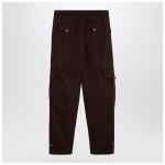 Brown cotton and wool blend wide trousers from Moschino featuring a front zip and button fastening, belt loops at the waist, two side welt pockets, two back flap and button pockets, two side cargo pockets and an adjustable strap at the bottom of the leg.