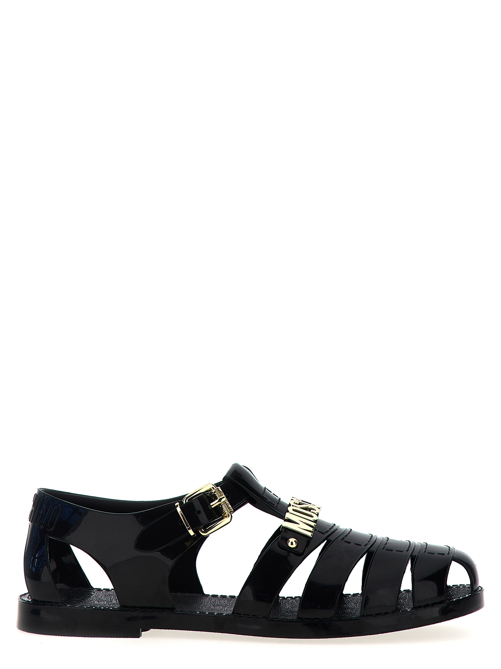 ‘Jelly’ rubber sandals with front metal logo appliqué and adjustable strap.