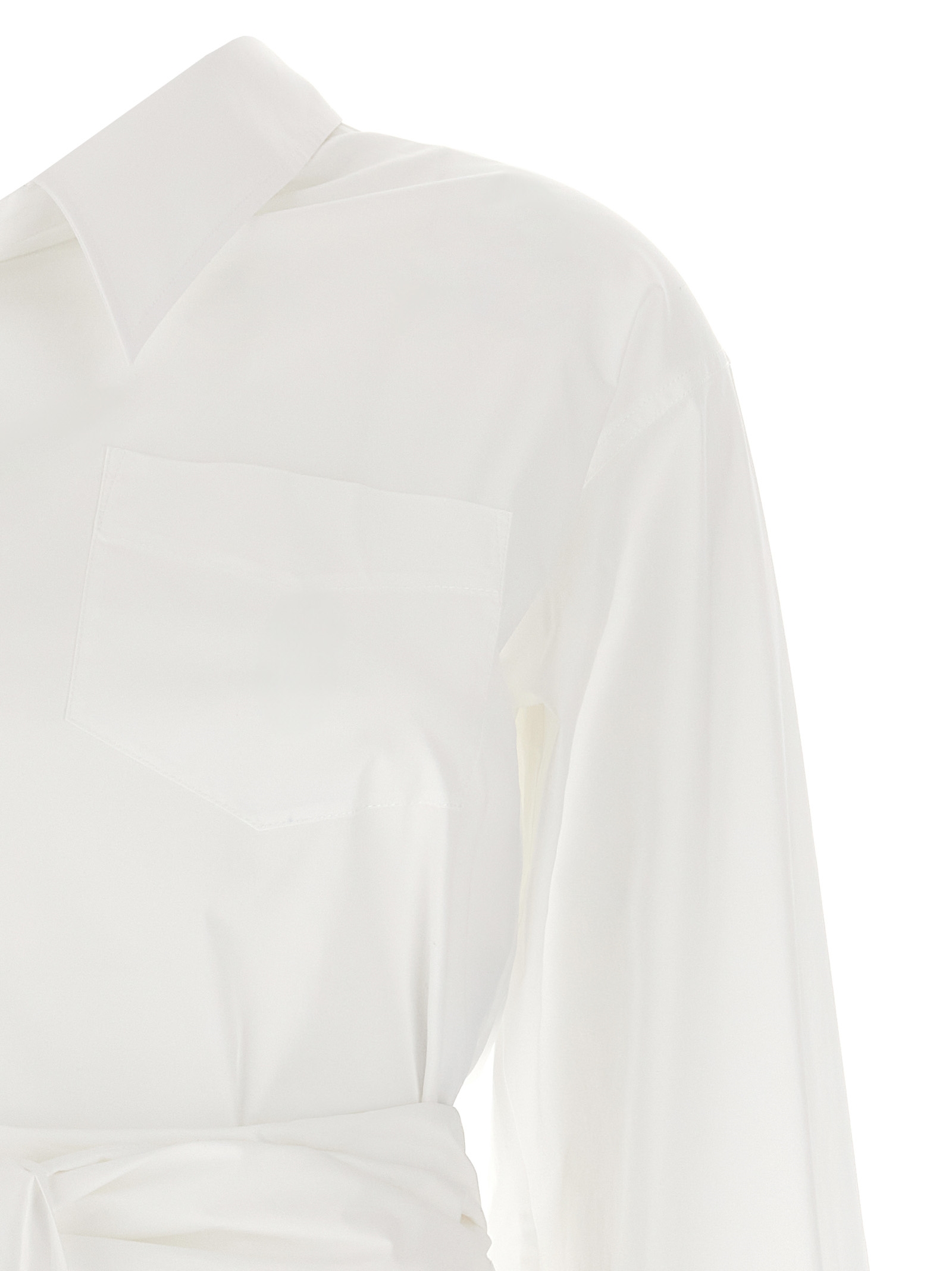 One-shoulder shirt in cotton poplin asymmetric, tailored details, sash knotted at the waist.