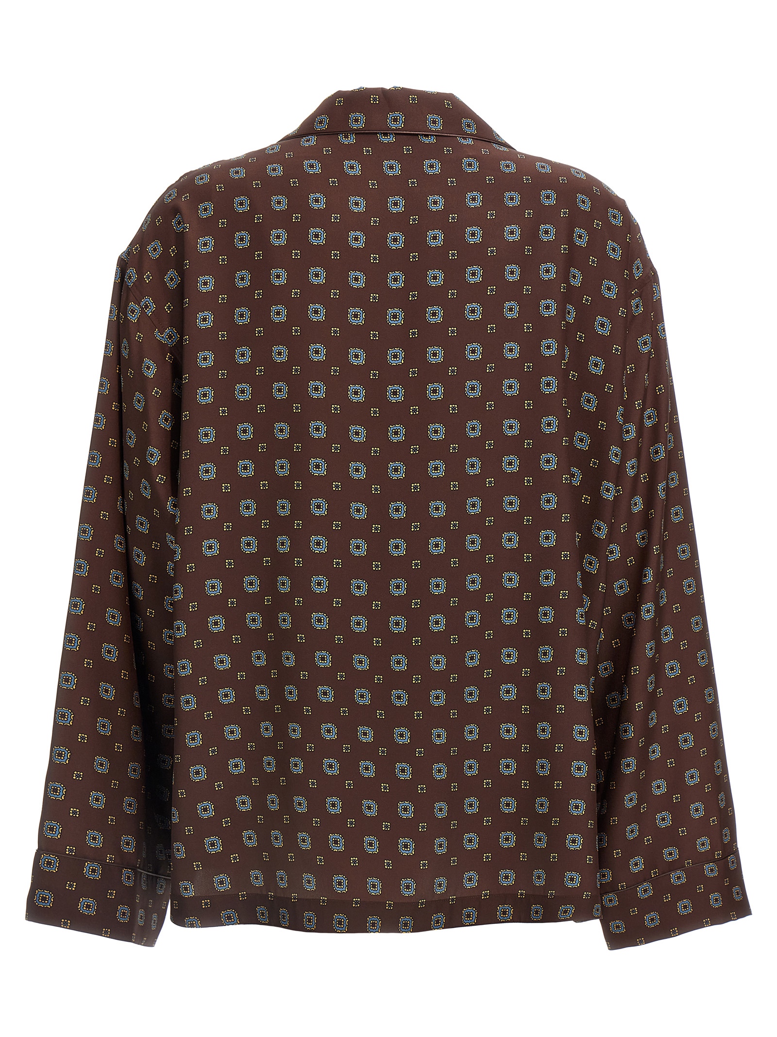 Patterned print silk shirt with button closure, long sleeves.