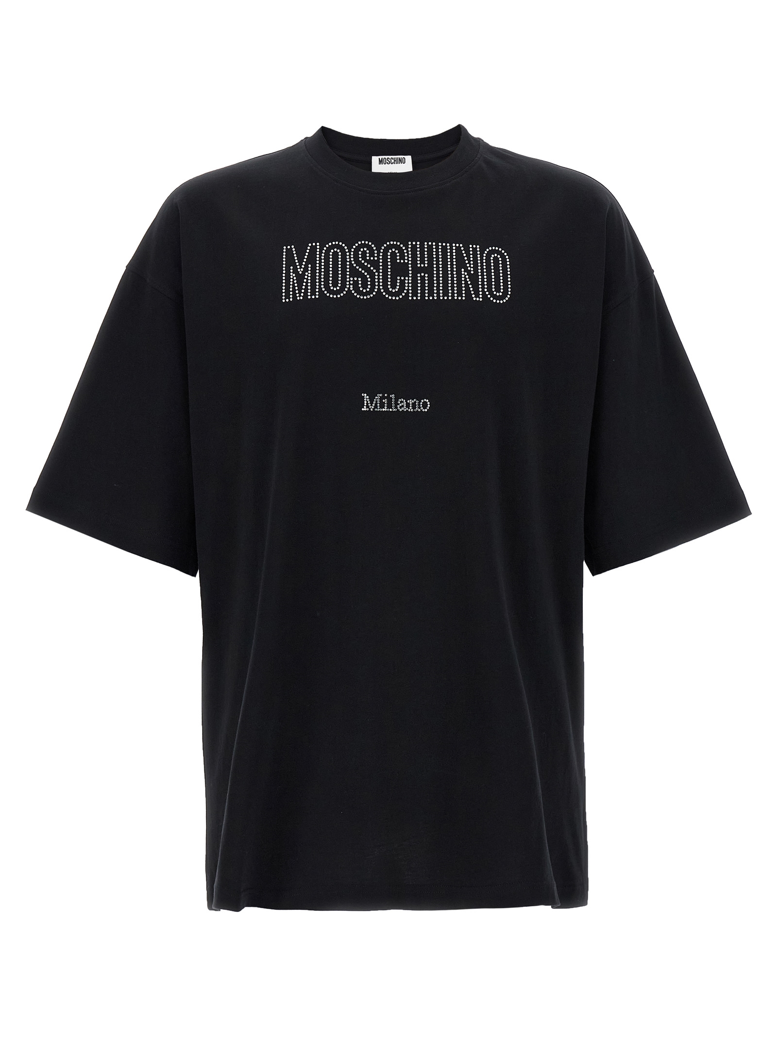 Cotton, Crewneck t-shirt with front rhinestone logo appliqué, And short sleeves.
