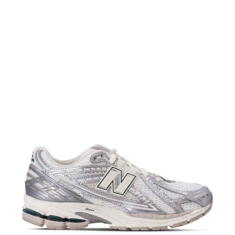 white/silver-tone/dark green calf leather mesh design panelled design logo patch to the side logo patch to the front logo patch at the tongue embossed logo to the rear perforated detailing round toe front lace-up fastening padded ankle mesh lining branded insole signature ABZORB® midsole SBS heel cushioning signature N-ergy outsole 1906 sneakers. Size and Fit – Please note this model is unisex, but the sizes refer to MEN sizing.