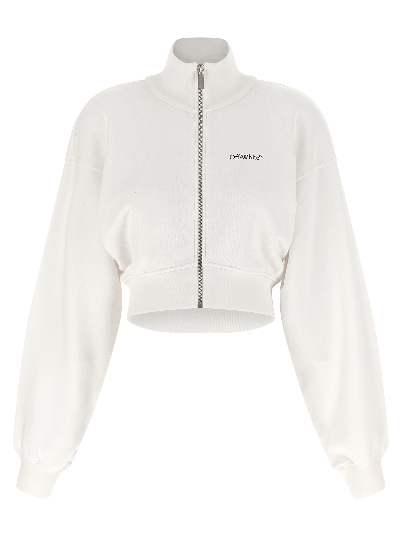 Brushed cotton sweatshirt, Crop model, ‘arrow glowing flower’ print on the back, High neck, Logo print and front zip closure, Long sleeves with cuffs and dropped shoulders, Band on the hem.