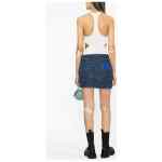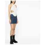 motorcycle hole miniskirt from OFF-WHITE featuring blue, cotton, high-rise, cut-out at front, decorative seaming, two patch pockets, rear leather logo patch and straight hem. Denim mini skirt