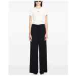 black wool tailored cut embroidered logo high-waisted belt loops concealed front fastening straight leg Formal over wool trousers