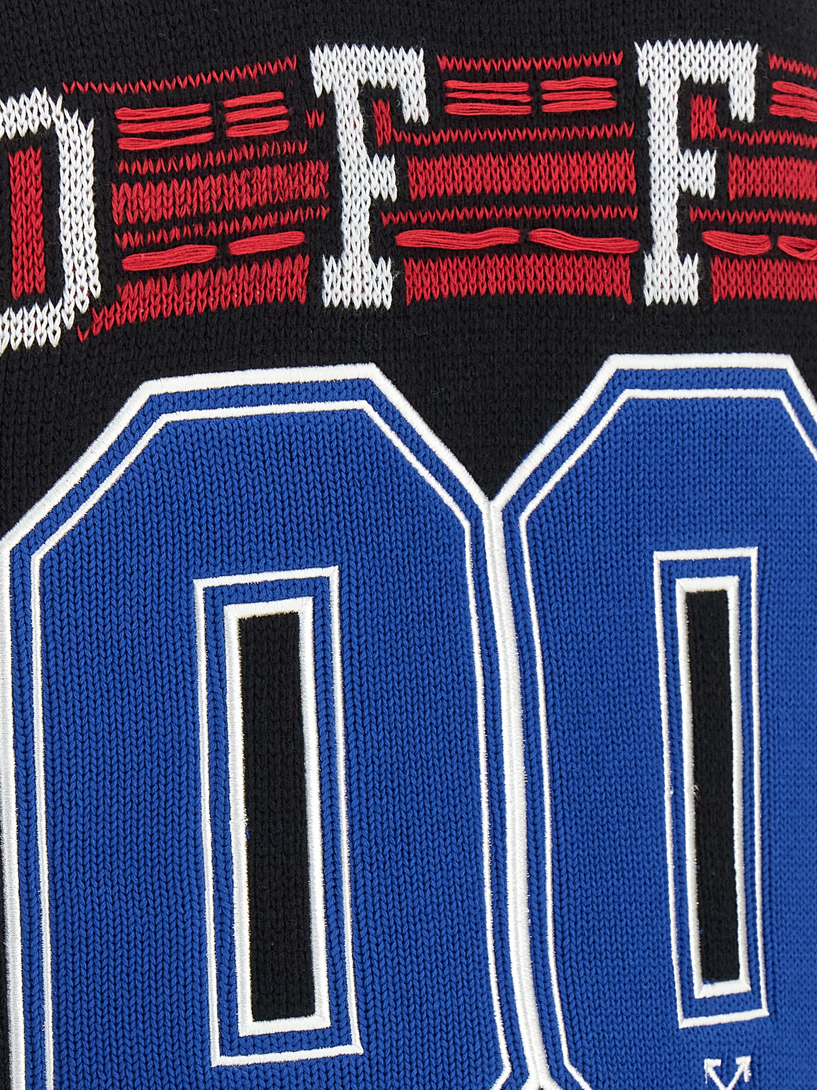 ‘Glide Diag’ heavy cotton knit cardigan with inlays and embroideries on the front and back, V-neck, front button closure, long cuffed sleeves and dropped shoulders.