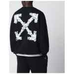 Off-White black cotton crewneck sweatshirt with heraldic arrow print on the back, contrasting logo lettering on the chest, long sleeves, ribbed trims and relaxed fit.