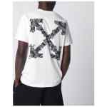 Off-White white cotton T-shirt with heraldic arrow print on the back, contrasting logo lettering on the chest, short sleeves, ribbed crew neck and slim fit.