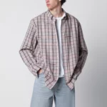 Balenciaga Burgundy plaid cotton-blend flannel zip shirt