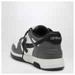 Low top trainer by Off-White featuring a white and dark grey leather upper, an Arrows motif, a logoed heel counter, contrasting leather detailing, a lace-up fastening, a distinctive Zip Tie logo plaque, a round toe and a flat rubber sole.