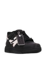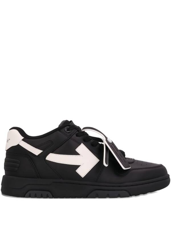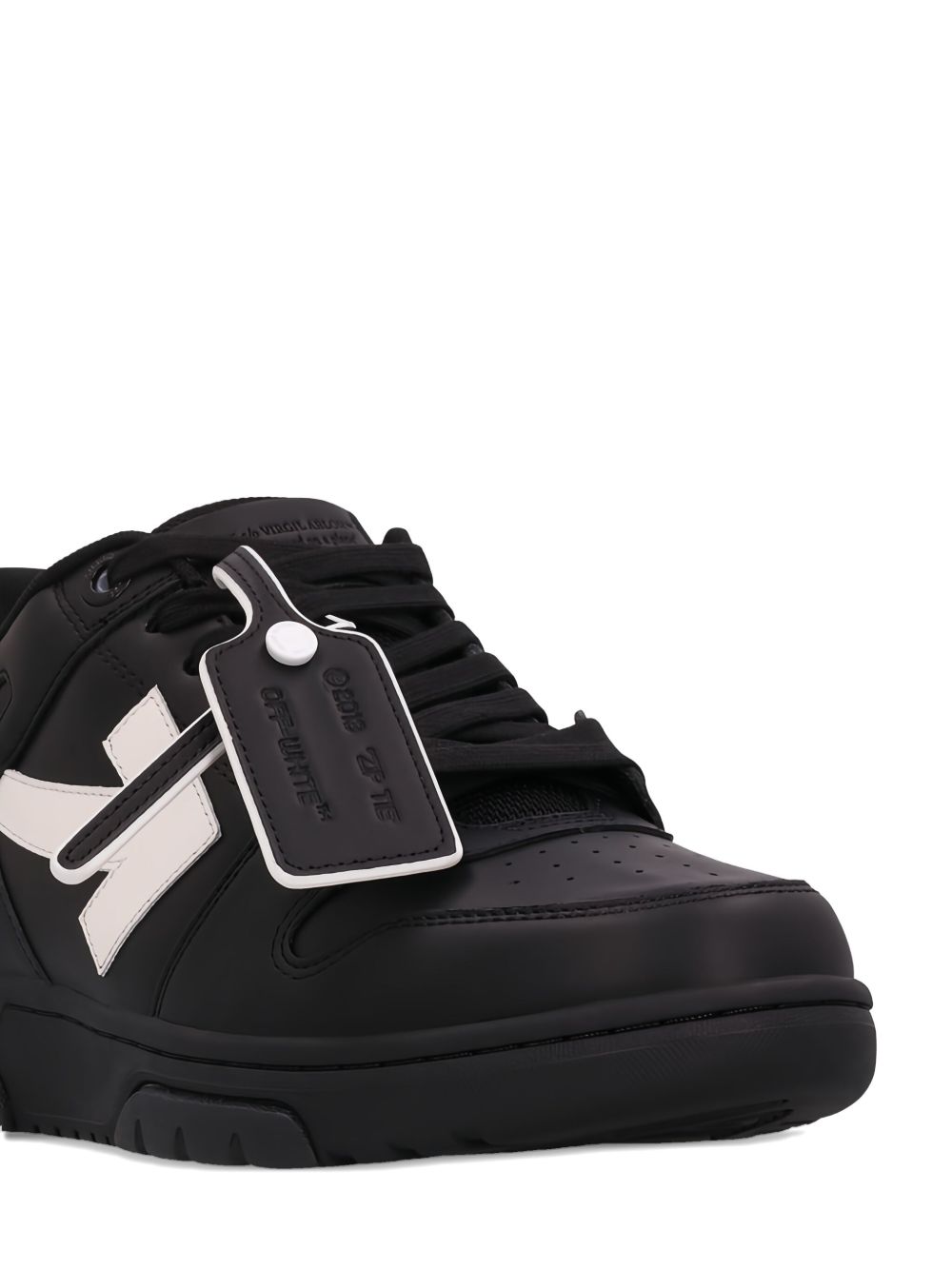 black/white leather signature Arrows motif signature Zip Tie tag panelled design front lace-up fastening round toe flat rubber sole Due to the dyeing process used, this product must not come into contact with water. Out Of Office leather sneakers. Size and Fit – Heel Height 3,5cm
