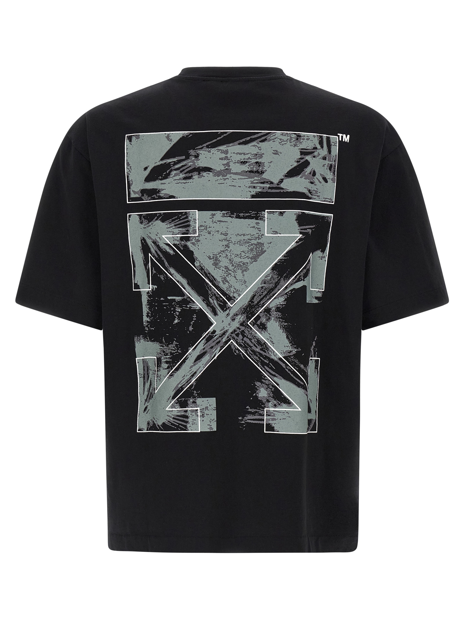 Cotton jersey t-shirt with front logo print, Back ‘paint arrow’ print, Crew neck, Short sleeves with dropped shoulders, Side slits.