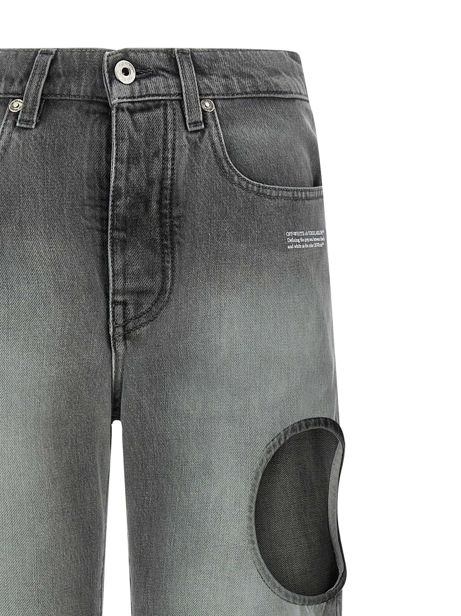 ‘spray new meteor’ délavé cotton denim jeans with cut-out hoop details, Straight leg, Front button print and closure, Five pockets, Back logo tag. Size and Fit – true to size fit