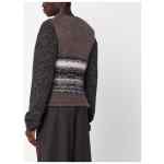 Round-neck gilet by Our Legacy in brown mohair and wool with contrasting striped pattern and ribbed edges.