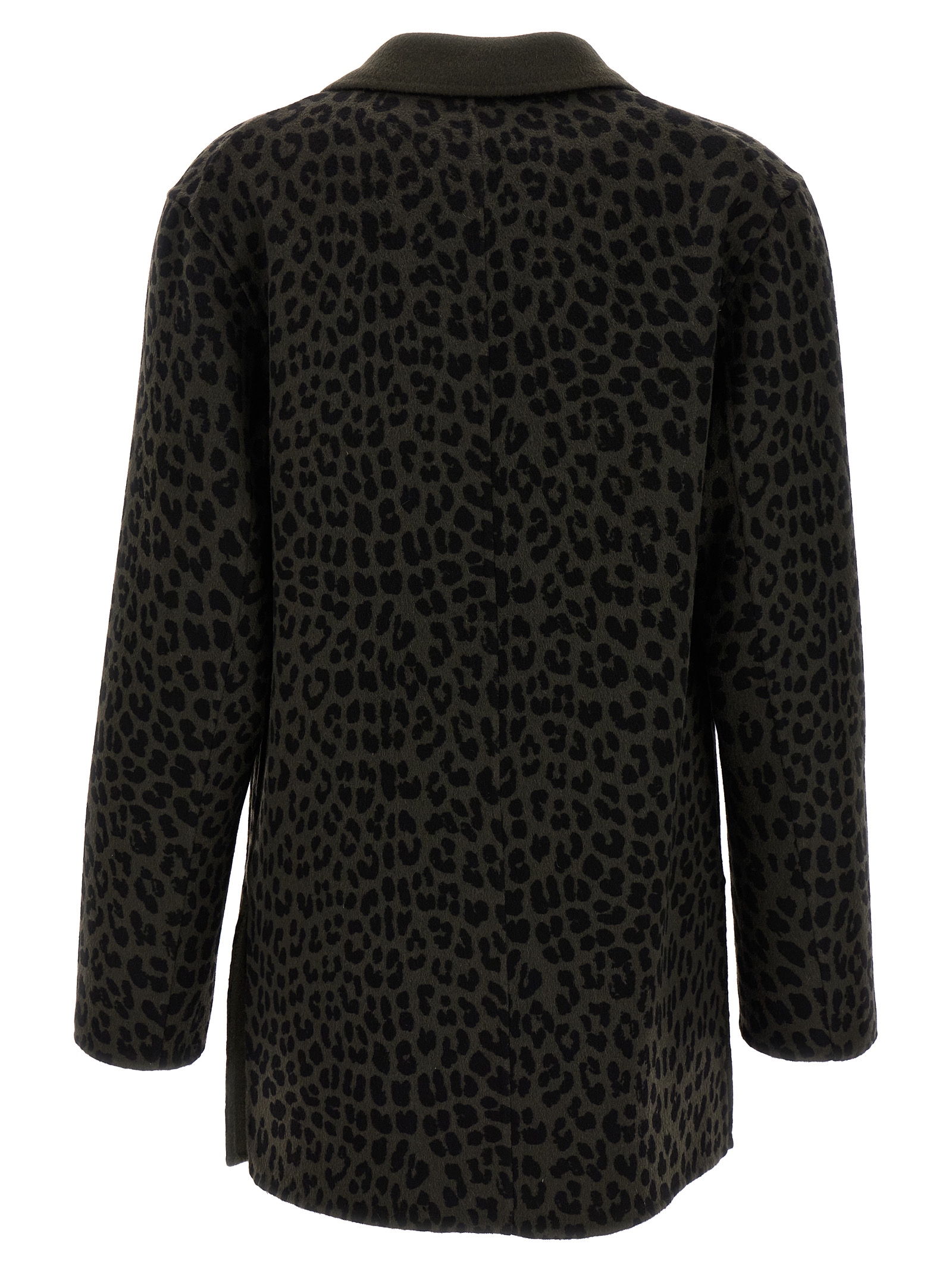 Double-breasted blazer in animal print wool with button closure, Pockets, Long sleeves.
