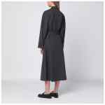 Midi shirt dress by P.A.R.O.S.H. in virgin wool anthracite grey, characterized by front buttoning, long sleeves with buttoned cuffs, classic collar, and adjustable waist belt.