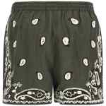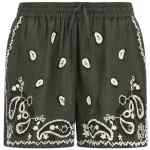‘beach26’ linen shorts with all-over embroidery, Wide leg, Drawstring elastic waistband, Pockets.