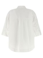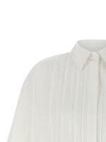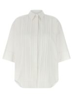‘canyox26’ shirt in cotton poplin, Pleated and front button closure, Wide short sleeves with cuffs, Rounded and asymmetrical hem. Size and Fit – oversized fit