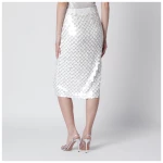 P.A.R.O.S.H. cream pencil skirt with circular sequins all over and smaller sequins at the waist.