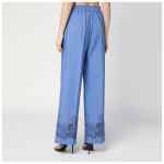 Light blue cotton poplin trousers by P.A.R.O.S.H., featuring an elasticized waistband with drawstring, two side welt pockets, and a hem with tone-on-tone floral embroidery.