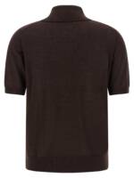 ‘linfa26’ polo shirt in wool, Silk and light cashmere blend, Collar and buttons, Pockets, Short sleeves with cuffs, And band on the hem. Size and Fit – true to size fit