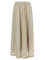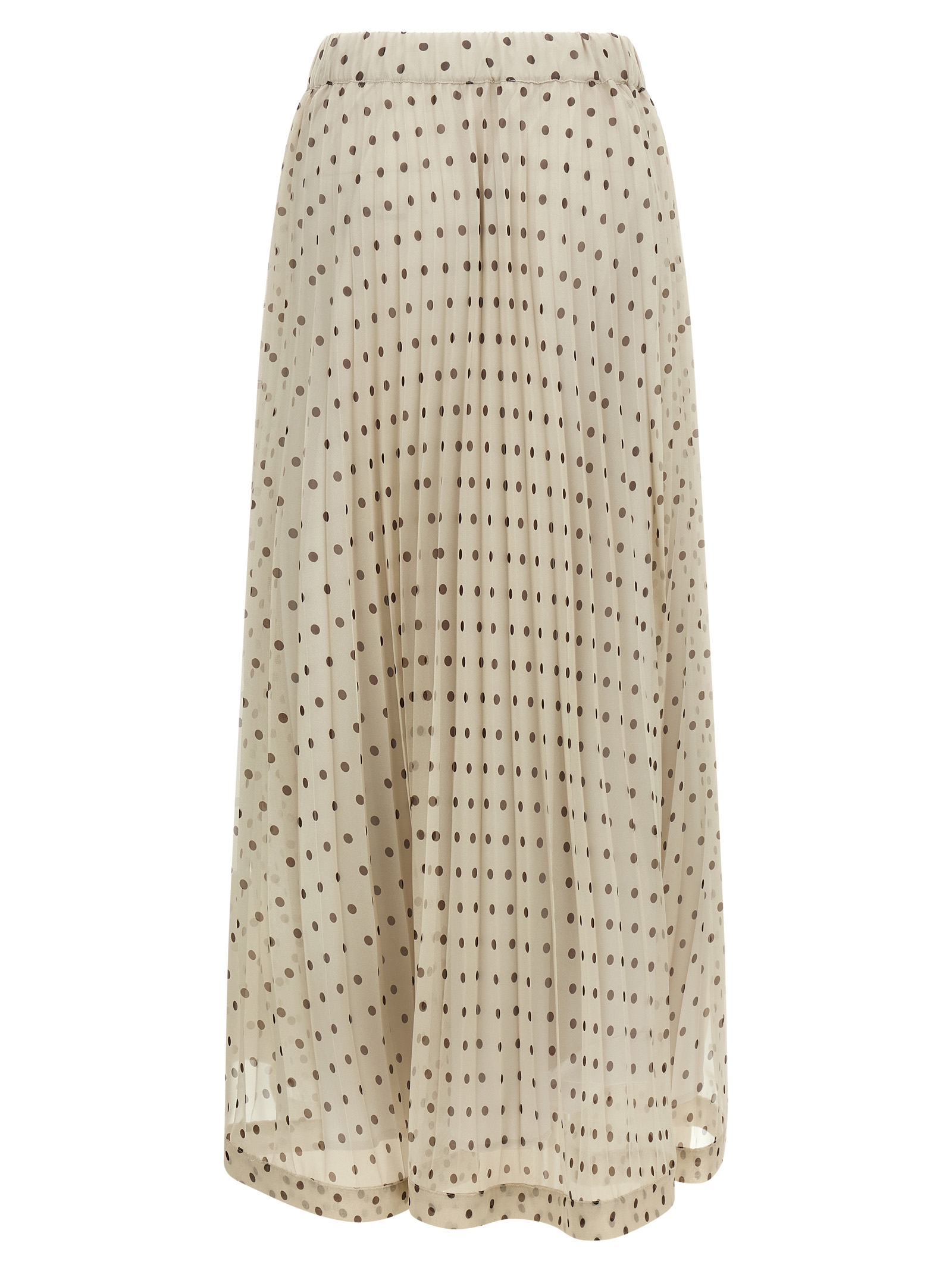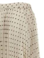 Long ‘pallina’ skirt in polka dot pleated soleil fabric with elastic waistband, Flared silhouette. Size and Fit – true to size fit