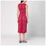 Sleeveless midi dress with a round neck by P.A.R.O.S.H. in red lace, featuring a zip closure at the back and a back slit.