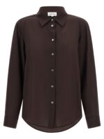 ‘sweet26’ silk shirt with front button closure, Long sleeves with cuffs and slightly reduced shoulder, Rounded and asymmetrical hem.