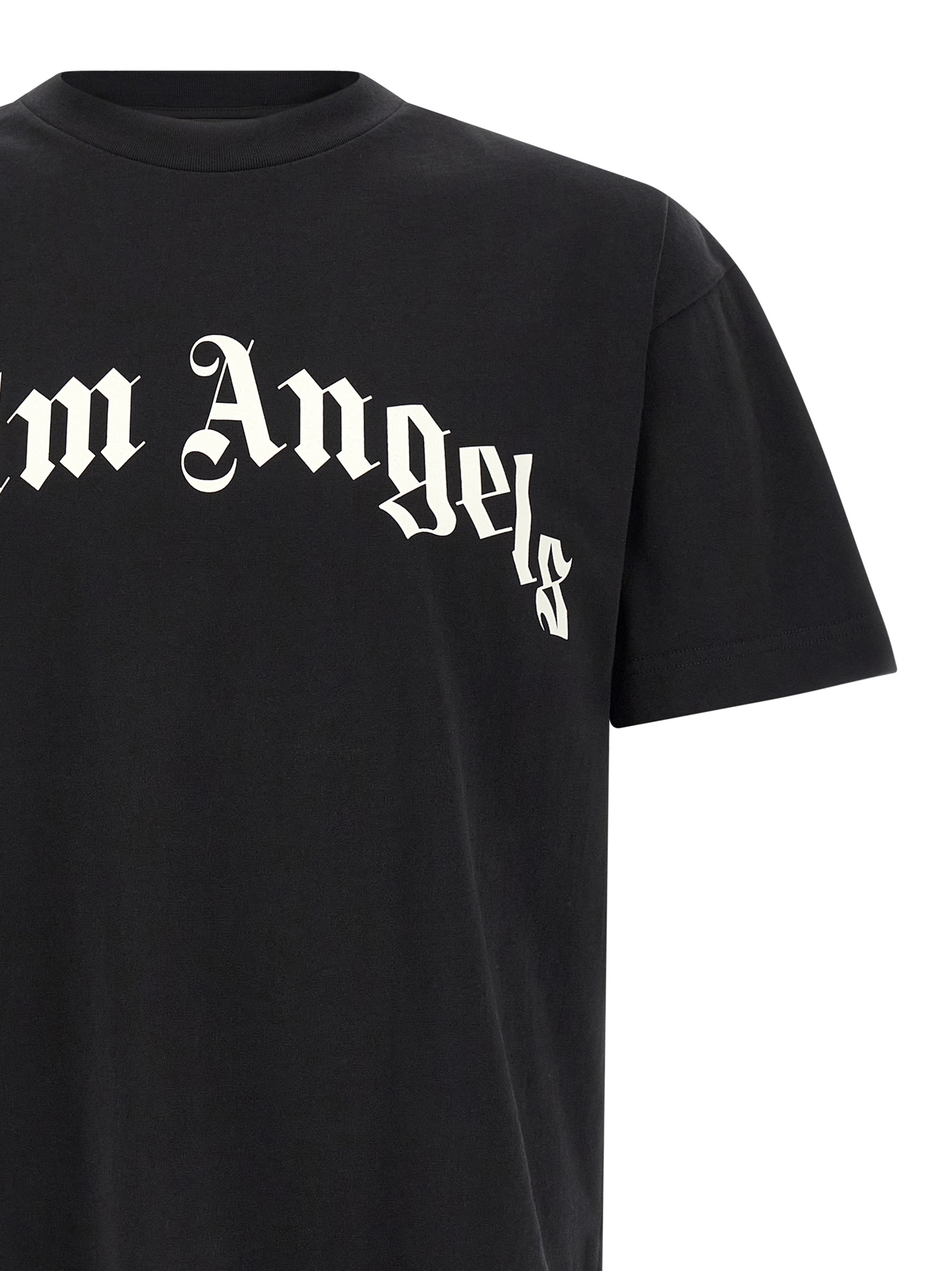 Cotton jersey t-shirt with front ‘curved logo’ graphic print, Crew neck, Short sleeves with dropped shoulders.