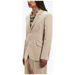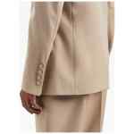 Fitted Retro single-breasted blazer from PALM ANGELS featuring beige, cotton blend, tailored design, notched lapels, front button fastening, two side flap pockets, long sleeves, buttoned cuffs, logo patch to the rear and central rear vent. Viscose blazer