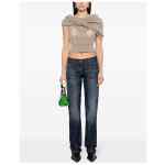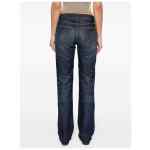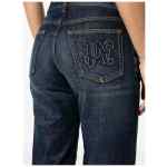 blue cotton blend denim embroidered logo whiskering effect belt loops button fly fastening classic five pockets Straight leg denim jeans