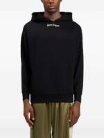 black logo print ribbed cuffs ribbed hem hooded Logo cotton hoodie.