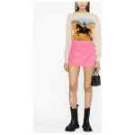 stripe-detail A-line miniskirt from PALM ANGELS featuring flamingo pink, cotton blend, stripe detailing, high waist, A-line, side slit, straight hem and thigh-length. Cotton mini skirt