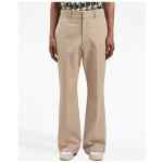 Retro Flare tailored trousers from PALM ANGELS featuring beige, cotton, tailored design, mid-rise, concealed front fastening, belt loops, two side slit pockets, flared, logo patch to the rear and two rear welt pockets. Flared trousers