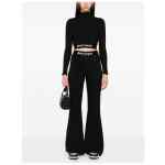 black knitted construction lurex detailing elasticated waistband logo-tape detailing flared pull-on style Logo lurex flared trousers