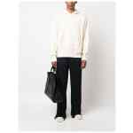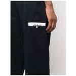 Sartorial-tape straight-leg trousers from PALM ANGELS featuring navy blue, cotton, mini logo tag, mid-rise, belt loops, concealed front fastening, rear button-fastening jetted pocket and straight leg. Cotton trousers