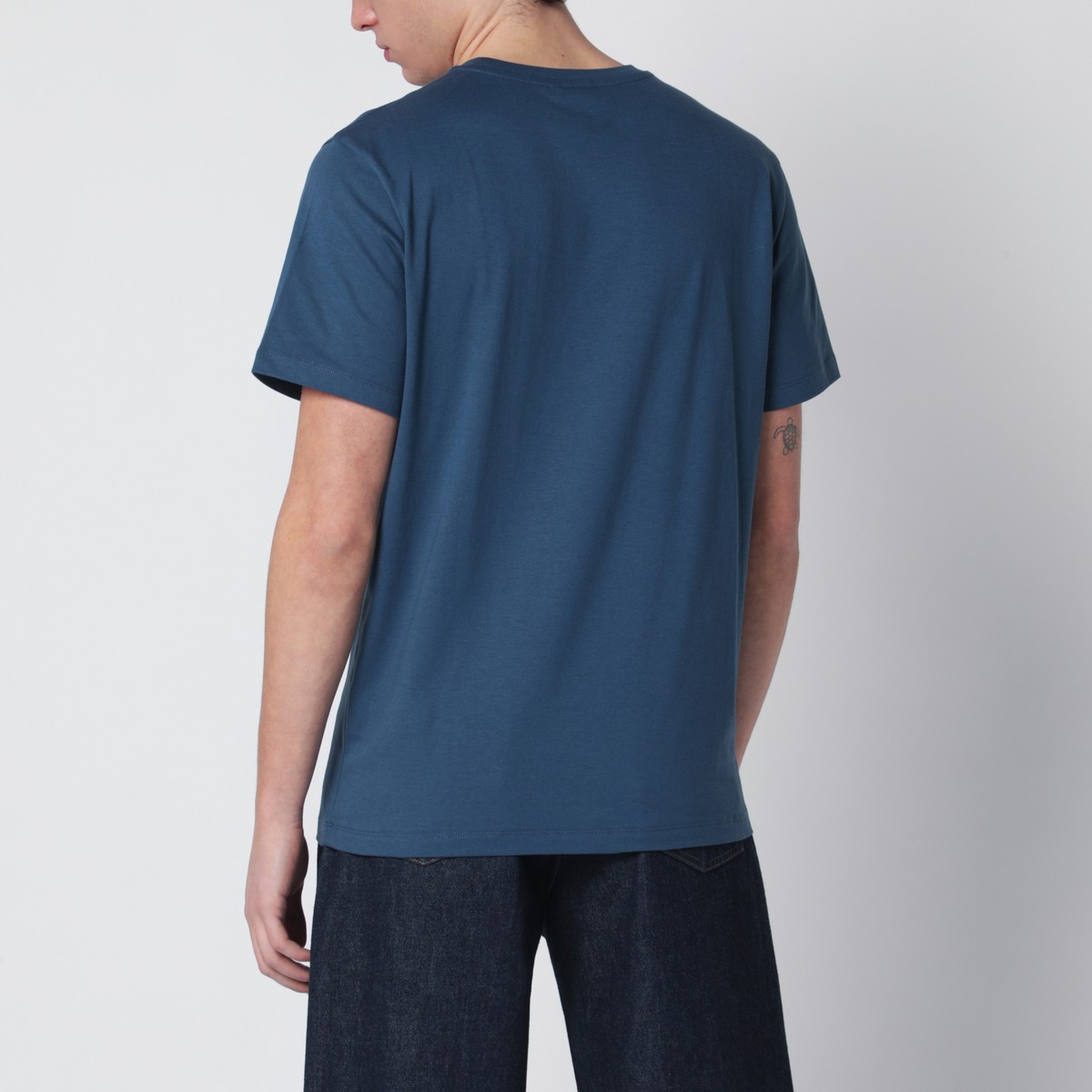 Parajumpers blue cotton jersey T-shirt, featuring short sleeves, ribbed crew neck, chest logo patch, and regular fit.