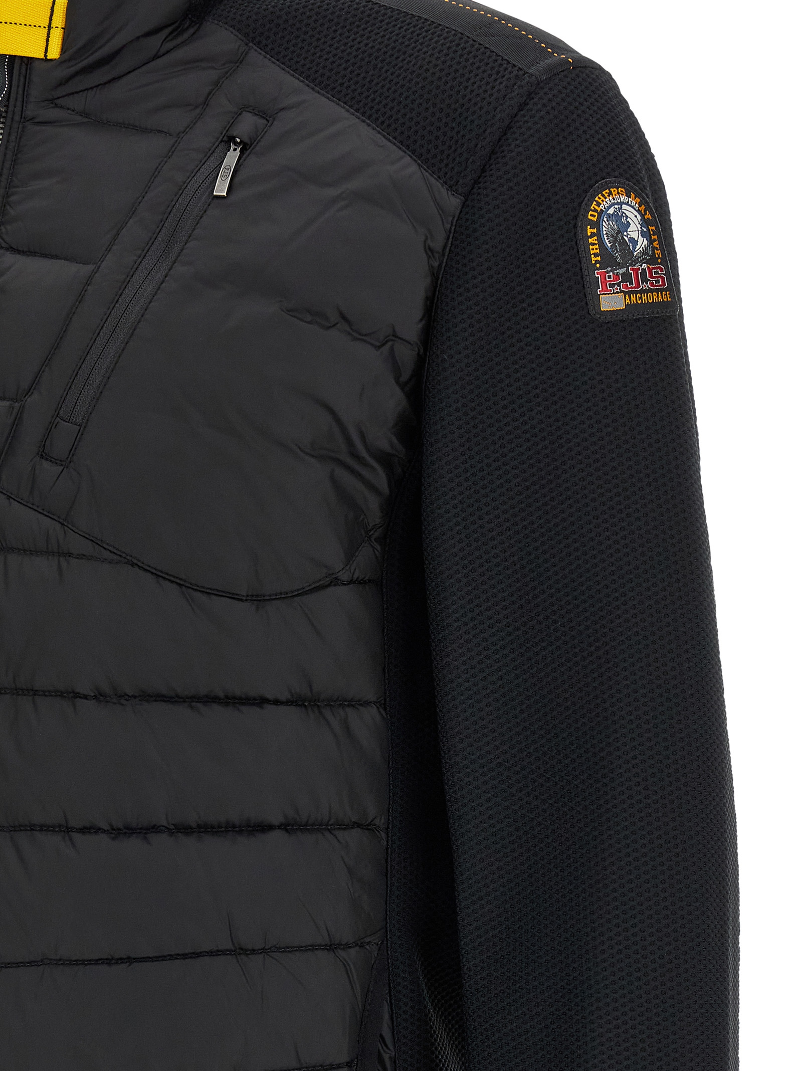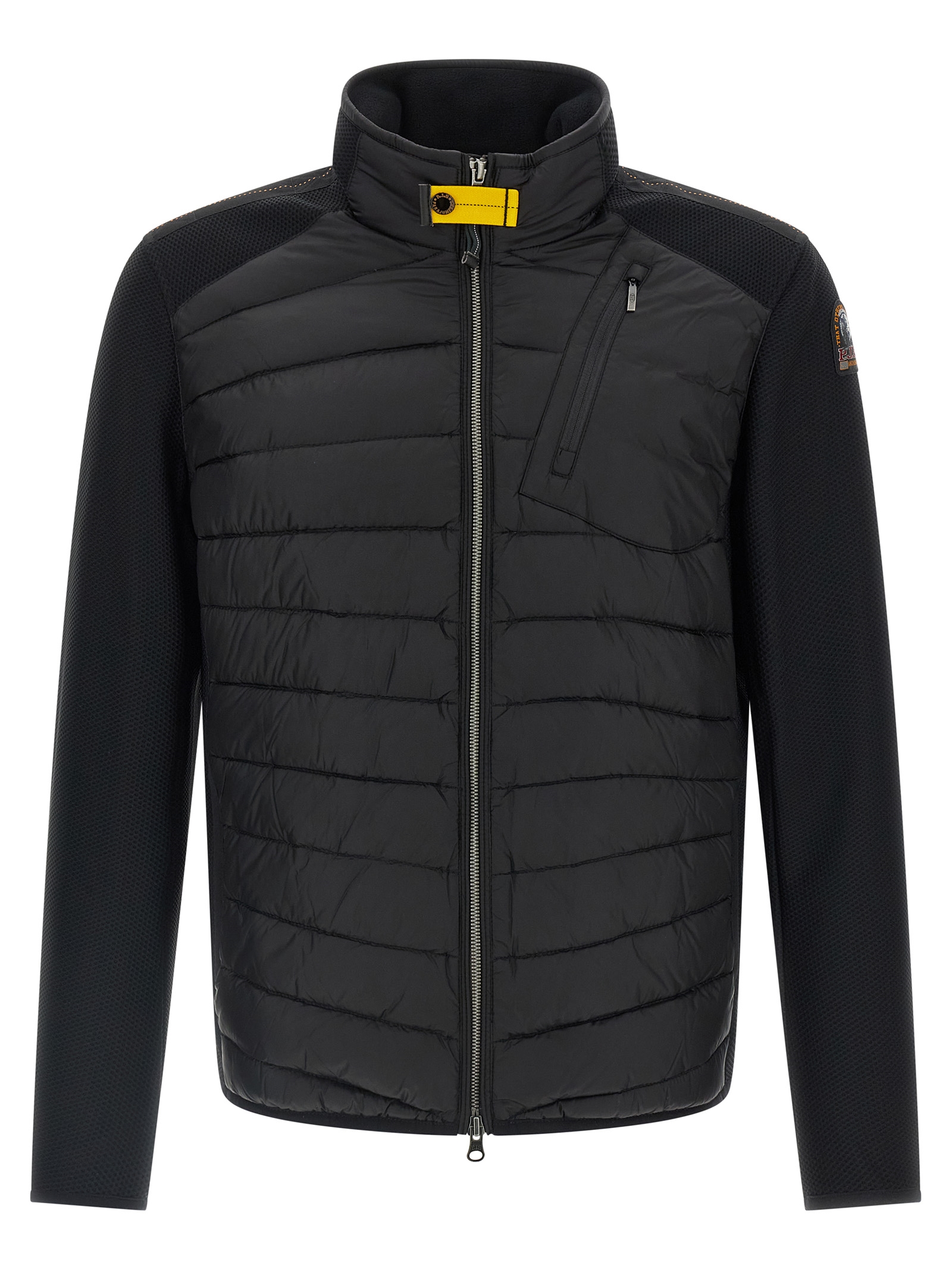 ‘jayden’ hybrid jacket in semi-glossy quilted nylon 20 denier taffeta slightly padded duck down with polyester elasticized honeycomb inserts, High neck, Front zip closure, Pockets, Long sleeves with applied logo patch.