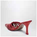 Mules from Paris Texas in red leather, characterized by a pointed perforated design, insole with logo, flared heel, and leather sole.