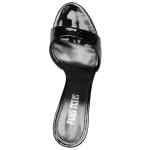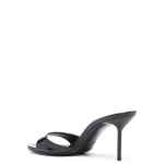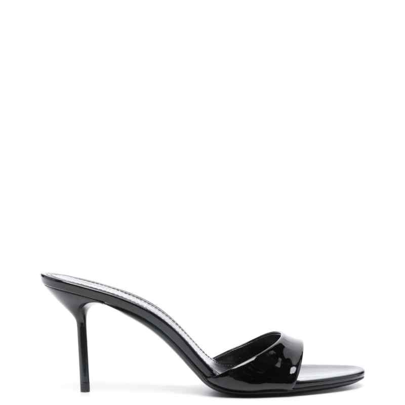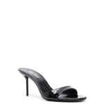 black calf leather almond open toe open back branded leather insole high stiletto heel leather sole Lidia patent leather heel sandals.