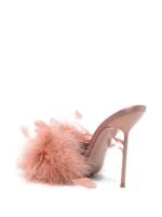 pink feather embellished open toe stiletto heel Lidia patent leather heel sandals.