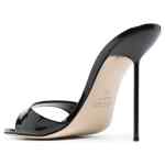black patent calf leather high stiletto heel open toe branded leather insole Lidia leather mules