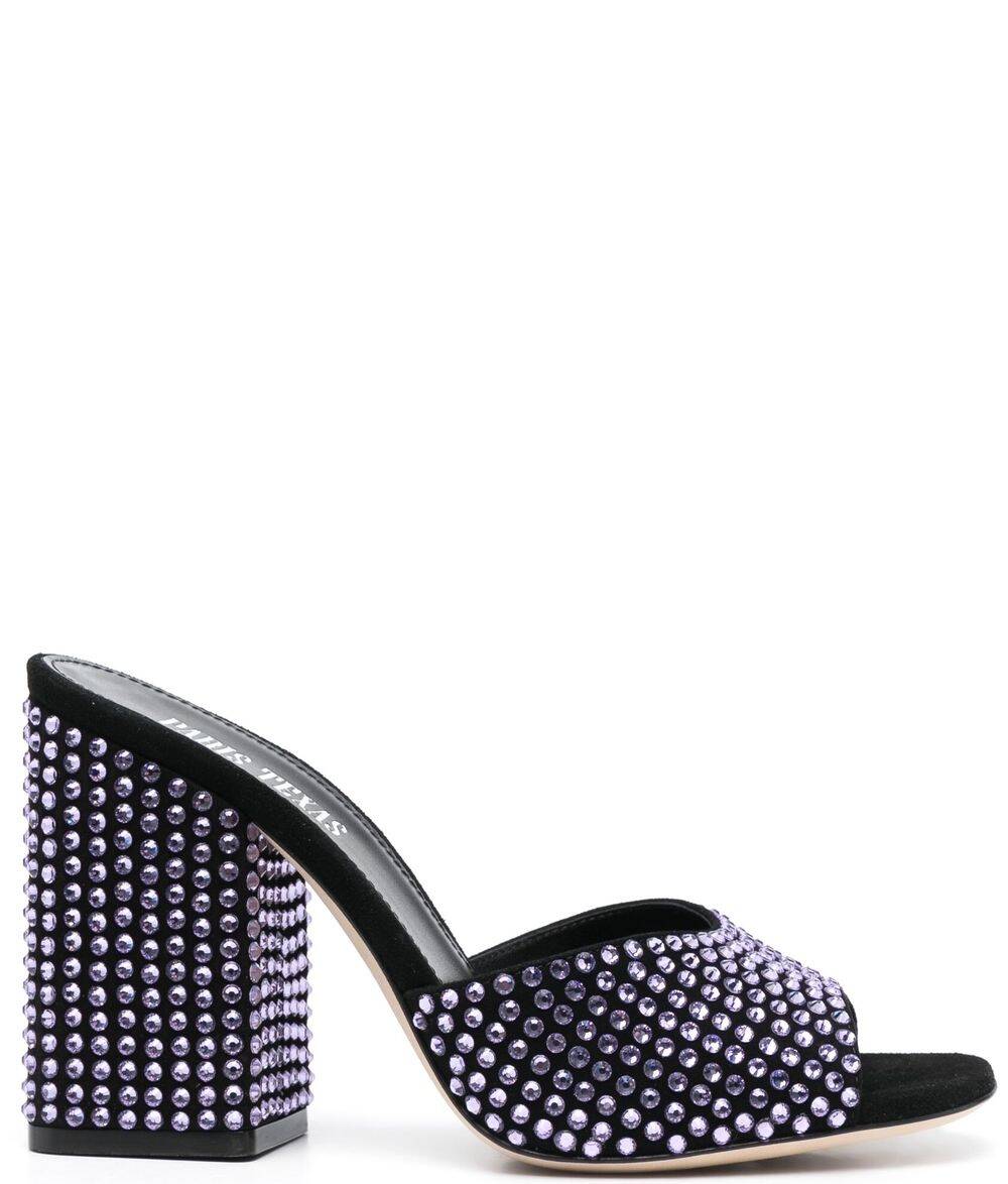 crystal-embellished 105mm mules from PARIS TEXAS featuring black, calf leather, crystal embellishment, slip-on style, open toe and high block heel. Anja crystal embellished suede mules