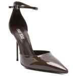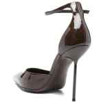 brown patent leather stiletto heel ankle strap buckle fastening pointed toe Lidia patent leather pumps